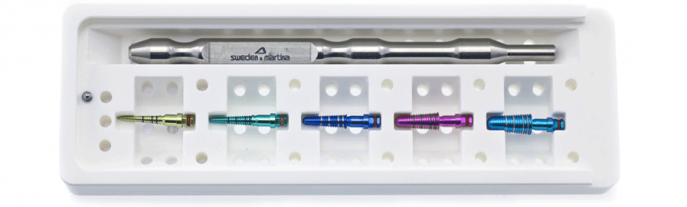 The Drill Bone Expander kit (DBE) starts from a new concept of the preparation of the implant site, which is offered on the panorama of possibilities available today as an alternative to drills and osteotomes, with the benefits of both approaches. The system calls for threaded conical tips that are fitted to a special ergonomic handle, with which they are manually screwed into the bone, causing a controlled plastic deformation of the latter without losing bone volumes, as occurs instead with drills, and without the collateral effect of blows with a surgical hammer.