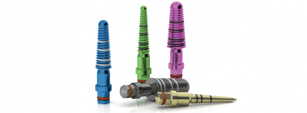 The tips, designed for sites with 4 walls, are in anodized titanium in different colours that make it easy to recognize the working diameters during operation. They also have depth markings to guide the user safely.